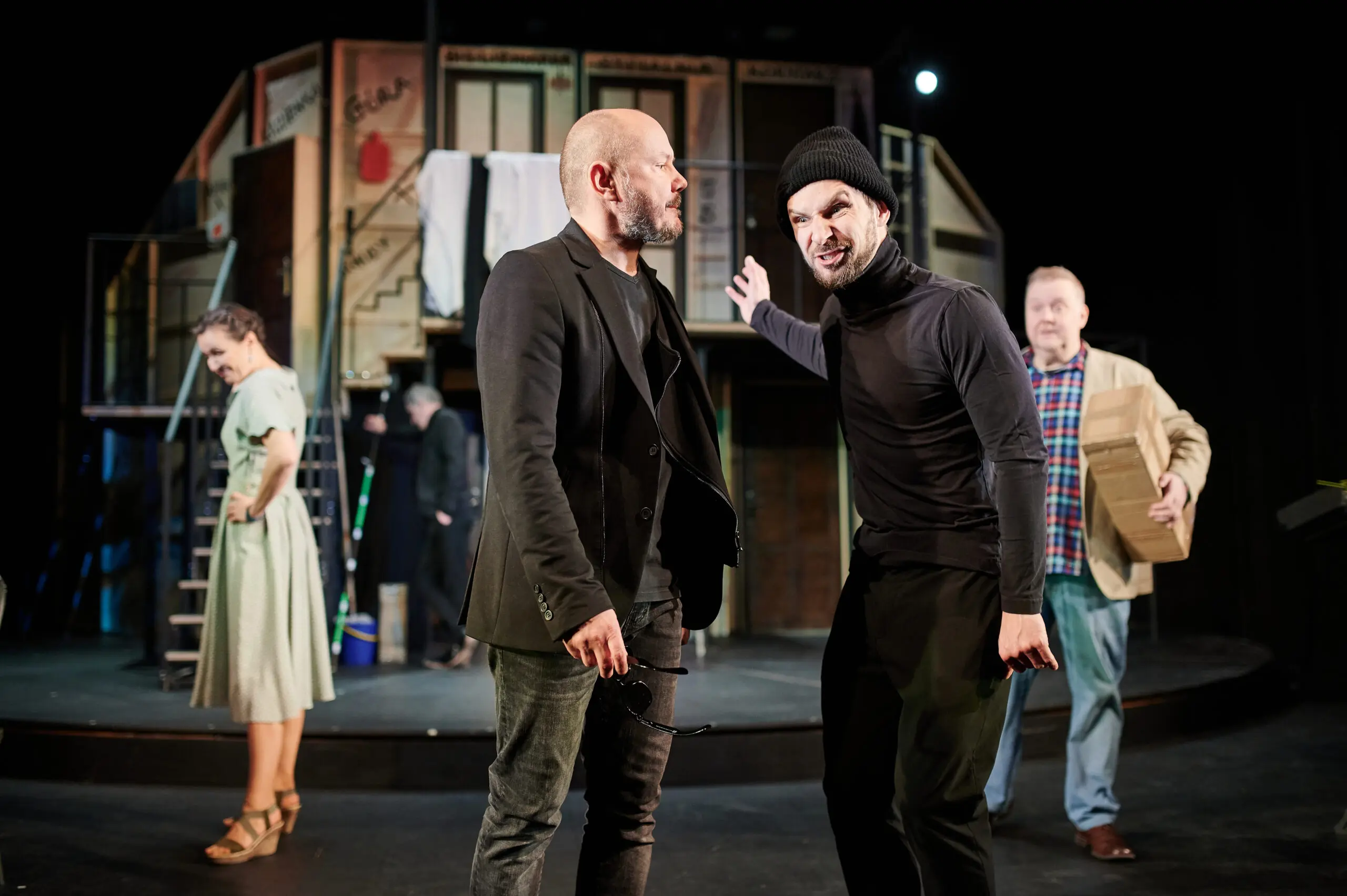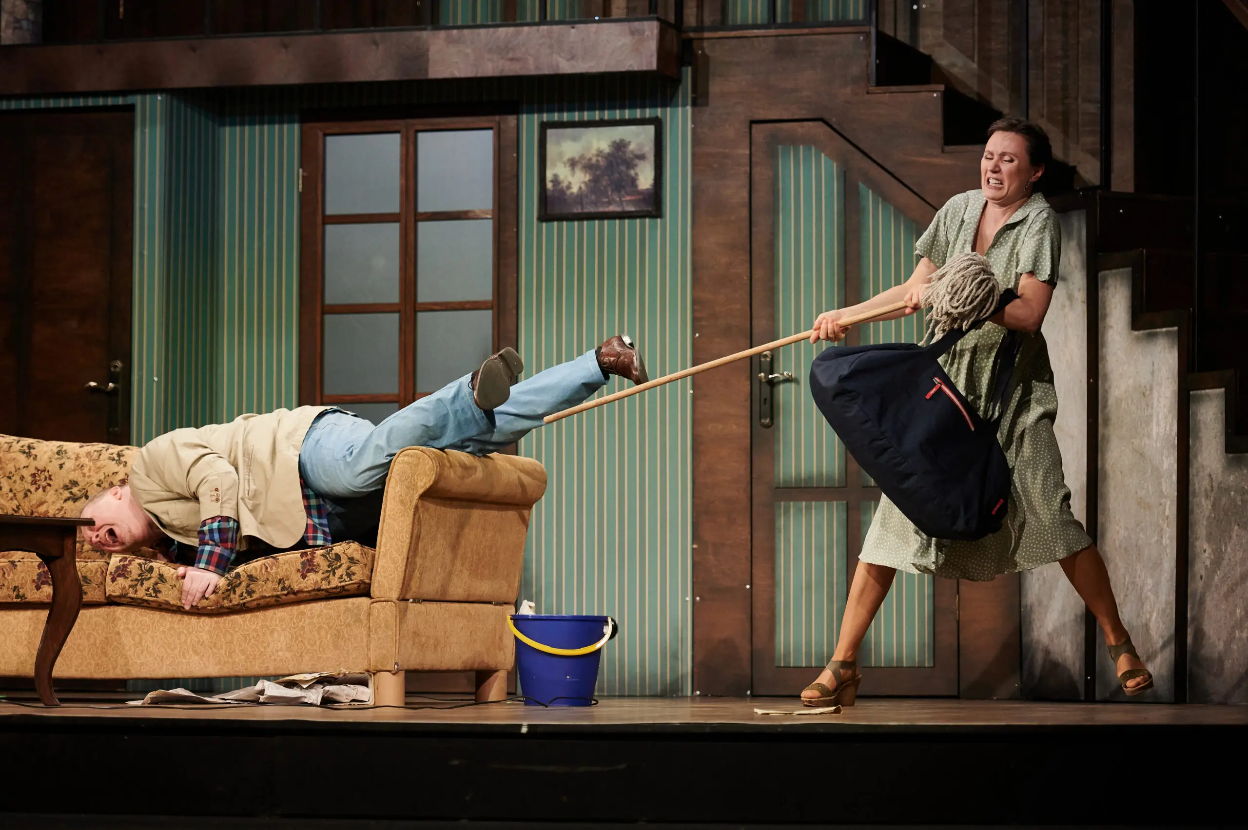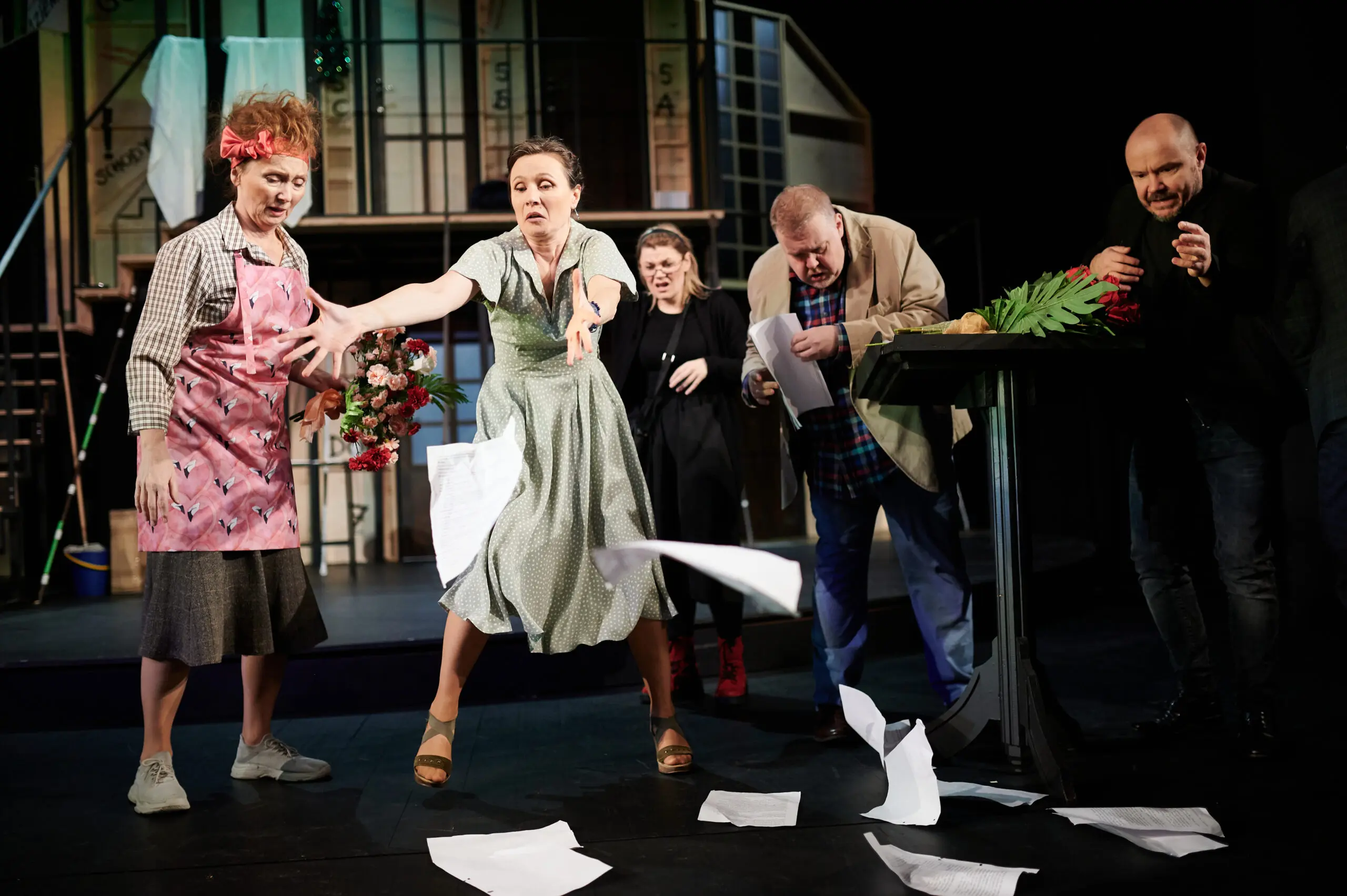 Wcale nie okrzyczany "Mayday" Raya Cooneya, a całkiem inny utwór zupełnie słusznie nosi miano najlepszej farsy świata lub — jak kto woli — farsy fars. Sztuką tą jest "Czego nie widać" Michaela Frayna, od czasu światowej prapremiery w 1982 roku grana nieprzerwanie i traktowana jak wzorzec metra z Sevres, gdy idzie o ten najtrudniejszy sceniczny gatunek. Pomysł brytyjskiego autora jest zabójczo prosty. Oto trafiamy za kulisy spektaklu "Co widać" - dość pośledniej przyznajmy teatralnej produkcji szykowanej ku rozbawieniu gawiedzi. Z początku jesteśmy na próbie generalnej. Spektakl jest w rozsypce, reżyser szaleje, scenografia trzeszczy, rekwizyty giną, techniczny ucieka w alkohol. Potem towarzyszymy aktorom w środku tournée z przedstawieniem. Do ogólnego chaosu dochodzą miłostki i animozje w zespole, robi się istny armagedon. To jednak nic wobec tego, co zobaczymy podczas ostatniego spektaklu. Nawet sardynki uciekną z talerza grającej pokojówkę aktorki...