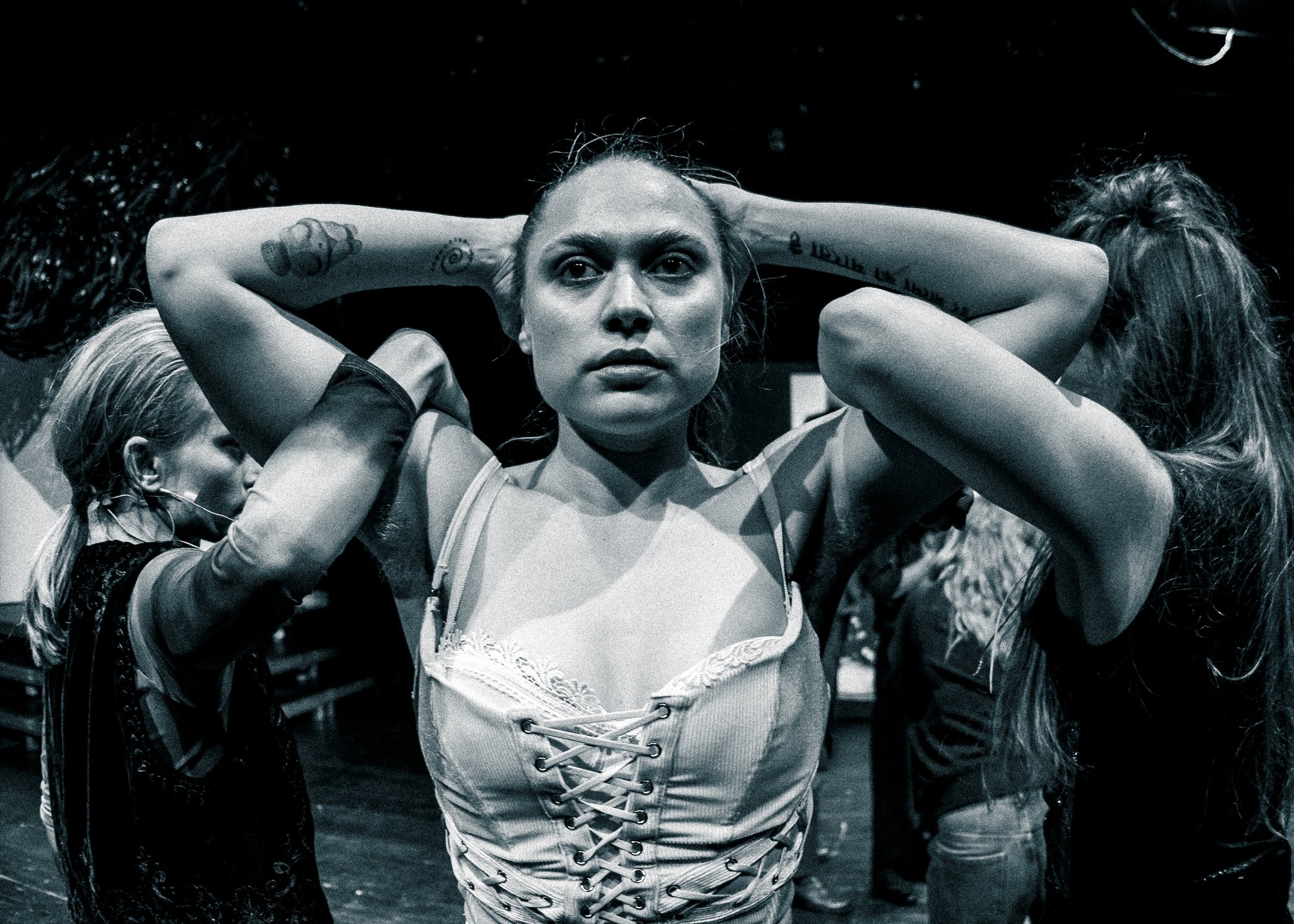„Susan Sontag" z Teatru im. Jaracza w Olsztynie to spektakl opowiadający o pozowaniu i na pozowaniu w dużej mierze się opierający, z całą dwuznacznością słowa „poza". W czarno-białej scenografii Anny Met aktorki (i aktor) odtwarzają słynne fotografie związane z życiem Sontag. Zastygają w półstatycznych obrazach. Jest w tym coś z dziewiętnastowiecznej zabawy w tableux vivantes. Taki obraz nigdy nie jest idealnie statyczny, zawsze coś drgnie, gdy aktorki (i aktor) fotografują się nawzajem.